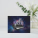 Carte Postale Chat sur synthétiseur dans l'espace