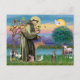 La sainte patronne des animaux, et l'environnement est montré ici avec un chat tabby américain brun à courte haïre brun. La figure de Saint François elle-même a été adaptée du chef-d'oeuvre de Giotto du XIVe siècle et un nouvel arrière - plan a été créé par Jean Fitzgerald