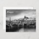 Une photo en noir et blanc du Château de Prague vue sur la Vlatva par le Pont Manesuv Most est présentée sur cette carte postale. La taille de la carte est de 13,9 cm x 10,6 cm et elle est imprimée sur un stock de carte ultra-lourd de 325 gsm avec finition brillante.