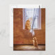 Orange chat tabby assis dans la fenêtre pendant qu'un chaton tabby orange le regarde ou peut-être pense juste à jouer avec la carte postale des amoureux de les chats de rideaux