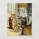 Illustration vintage de chats anthropomorphes dégustant une délicieuse collation de châtaignes grillées du vendeur ambulant. Artiste : Maurice Boulanger