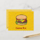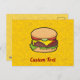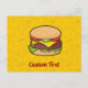 Illustration de dessin animé Cheeseburger. Les aliments indésirables entourent les icônes jaune motif arrière - plan. Texte personnalisé.