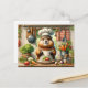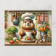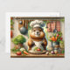 Cette carte postale exquise présente l'illustration charmante d'un cuisinier de marmotte prêt à apporter un charme culinaire à votre cuisine. Habillé d'un casquette et d'un tablier blanc classique, le marmotte trône fièrement dans une cuisine rustique, brandissant une cuillère en bois comme un maestro culinaire. La cuisine est agrémentée de légumes frais comme des carottes, des tomates et de la laitue, et les ustensiles de cuisine bien utilisés sont accrochés à l'arrière - plan, sur fond de planches en bois et de serviettes de cuisine à damiers. Cette carte postale, invitation d'un soupçon de joie et d'imagination dans les maisons des amateurs de cuisines et des amoureux des animaux, en fait un choix idéal pour ceux qui cherchent à ajouter une pincée de lucidité à leur correspondance ou à leur décor de cuisine.