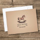 Une carte postale d'anniversaire avec un dégradé et texturé arrière - plan beige et une illustration d'un cheval rocking artisanal dans les tons marron : un cadeau sympathique pour un enfant ou un amoureux de jouets en bois!