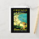 Art poster vintage pour Chicago Illinois Central avec une femme art déco donnant sur le lac Michigan.