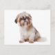 Aww...Qui pouvez-vous résister au visage doux d'un chiot chih Tzu chien ? Cette mignonne carte postale de canine présente l'image d'un chih tzu blanc brun et crémeux mis en valeur contre un arrière - plan blanc immaculé. Ce petit sucré est prêt à vous aider à faire savoir à vos amis et à votre famille que vous pensez à eux.