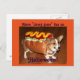 La photo adorable d'un chien en costume de hot-dog avec le message "Amusez-vous à danser" amusant pour Halloween ! est présentée sur cette carte postale. Une façon mignonne d'envoyer des salutations Halloween à la famille ou à des amis!