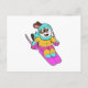 Carte Postale Chien en skieur avec ski et écharpe