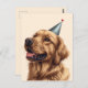 Illustration de dessin animé mignon de chien Retriever d'or portant un chapeau d'anniversaire. Parfait pour les amoureux des animaux ou les parents de chiens.