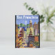 Affiche de voyage vintage pour San Francisco avec Chinatown, East Bay Bridge dans l'arrière - plan ainsi qu'un téléphérique.