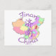 Jinan de la province de Shandong sur une carte colorée de la Chine inclut les symboles chinois pour 'Jinan' et sa position est marquée sur la carte avec un coeur et un drapeau. Un cadeau amusant et unique ! Conçu par Hendrika de RedThreadMaps.com