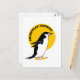 A cute black and white illustration of a Chinstrap penguin walking in front of the yellow sun. A design for penguin lovers. These birds are found in the pacific and Antarctic oceans.