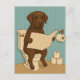 Carte Postale Chocolat Labrador Lecture journal sur Toilet