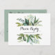 Cette carte postale de calligraphie tropicale verte au choix rsvp est parfaite pour un mariage simple. Le design est composé de feuilles tropicaux à dominante verte, avec une touche de fleurs roses rousses, soigneusement arrangées en couronnes élégantes et formes géométriques.