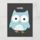 Carte postale de la Chouette Bleue, "Qui". Le texte peut être personnalisé. Une carte postale amusante pour les envois professionnels et personnels. Visitez Jenn's Doodle World pour plus de cartes postales et de produits amusants avec ce chouette chouette.
