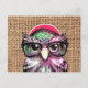 Carte Postale Chouette cool Couleur Tatouage Sage Avec Lunettes