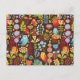 Belle motif sans couture avec de mignons chouettes de caricature sur l'arrière - plan brun fleuri.