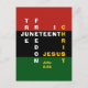 Christian JUNETEENTH Carte postale aux couleurs panafricaines. Design élégant JUNETEENTH avec référence de la Bible chrétienne, montrant la citation inspirante TRUE FREEDOM IN CHRIST JESUS dans un format de mots croisés y compris JUNETEENTH, et est placé contre les panneaux rouges, noirs et verts (couleurs RBG du DRAPEAU AFRICAIN PAN). Le texte principal est basé sur la référence de l'Écriture de Jean 8:36 - LUI QUI LE FILS (JÉSUS) LIBRE EST EN EFFET LIBRE. La référence biblique JOHN 8:36 est PERSONNALISABLE, vous pouvez donc remplacer le texte par vos INITIALES ou NOM. Cette carte postale du 11° juin serait un excellent moyen de célébrer le 11° anniversaire des Afro-Américains. Soyez prêt à partager votre foi, car cela ferait aussi un grand début de conversation.