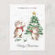 This design features a watercolor illustration of joyful hedgehogs in front of the Christmas tree.