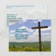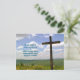 Carte postale du service de Pâques. Croix pittoresque en bois sur une photo de colline avec texte personnalisé à l'avant et à l'arrière. L'exemple de carte a l'église, ou le lieu de culte, le nom et l'adresse sur le devant. Un modèle en haut sur le dos contient les écritures "Il s'est levé", et plus de texte pour l'invitation à adorer le dimanche de Pâques. Des remises en vrac s'appliquent.