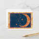 Ciel nocturne avec lune croissante et étoiles au-dessus d'une page de dictionnaire vintage.