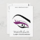 Dessin simple d'un oeil féminin avec de longues cils et un eyeliner en noir et violet. Parfait pour la promotion de votre entreprise. Convient aux maquilleurs, agrandissement de la foufe, esthéticiennes, stylistes, salon de spa, salon de coiffure et de beauté ou agence modèle. Personnalisable.