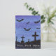 Un paysage à l'aquarelle de chauves-souris en vol au-dessus d'un cimetière la nuit orne cette carte postale personnalisable !