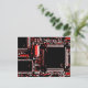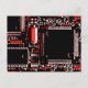 Design moderne avec un gros plan d'une carte de circuits imprimés en rouge et noir. Carte postale avec un design personnalisable pour vous permettre de personnaliser avec votre propre texte, photos et idées. Créé à l'aide d'une photographie originale et de techniques numériques de Jess Perry.