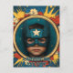 Carte postale idéale pour les anniversaires d'enfants qui aiment les bandes dessinées et les super-héros. Il y a un cadre circulaire avec une illustration de bande dessinée que vous pouvez remplir avec votre propre photo et votre propre texte ! Cette carte postale est idéale pour célébrer les anniversaires et les événements scolaires pour les enfants.