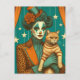 Un mignon clown de cirque portant une veste poster de animal et tenant un gingembre kitty IA produit de l'art