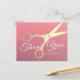 Modèles de cartes de remerciement pour salon de coiffure / coiffeur / coiffeur / salon de beauté / artistes maquilleurs / stylistes / organisateurs de mariage / organisateurs d'événements / consultants / propriétaires de boutiques / fashionistas - Ciseaux en or faux moderne sur fond dégradé rose.