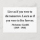 "Vis comme si tu allais mourir demain. Apprenez comme si vous deviez vivre pour toujours." - Mahatma Gandhi