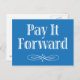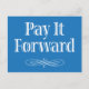 Payez-le en avant, un dicton inspirant dans le design typographique avec le blanc sur le bleu et tourbillon ornement. Un rappel motivant pour transmettre la bonne volonté et donner ou faire une bonne action pour aider les autres.
