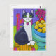 Un chat noir et blanc assis à côté d'une table avec un grand bol bleu rempli de citrons. Elle porte un collier avec un coeur. Customisez ce produit avec un nom ou un message pour le rendre vraiment unique