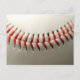 Baseball en cuir blanc avec couture rouge.