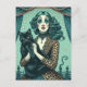 Un clown de cirque dans une veste d'impression de guépard tient un chat noir L'art généré par l'IA