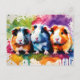 Carte Postale Cobayes mignons aux éclaboussures de couleur, sur