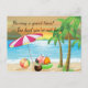 Plage tropicale calme avec parasol ombragé un cochon mignon dormant sur un tube intérieur. Il a une noix de coco assise à côté de lui et des palmiers à droite. Tout texte est facile à éliminer ou à modifier