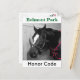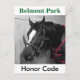 Honor Code, les principaux enjeux gagnant cheval plus âgé de la grange Shug McGaughey au beau parc Belmont. Un pur-sang noir bien construit posant avec sa couverture de cheval à l'intérieur de son étal, est en pleine couleur puisque l'arrière - plan a été changé en noir et blanc. Cela a été pris un mois avant qu'il ait terminé troisième dans le classique de la coupe de Breeder, sa dernière course avant d'aller à l'étude de devoir. Fleetphoto