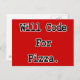 Carte Postale code pour la pizza