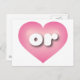 Cette carte postale présente un coeur rose avec un centre blanchi contenant les lettres coques inférieures arrondies et audacieuses ou, une abréviation ludique pour l'Oregon, l'état castor. Le verso de la carte est vide, en attendant vos sentiments manuscrits ou le texte customisé.