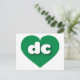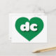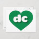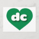 Cette carte postale est dotée d'un coeur vert plein de formes et de vitalité, contenant les lettres coques inférieures dc, blanches et arrondies, une abréviation ludique pour le District de Columbia. Le verso de la carte postale est vide, en attendant vos sentiments manuscrits ou le texte customisé.
