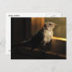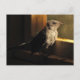 Cette carte postale nature d'art met en vedette la photographie d'un bébé oiseau gris qui a volé dans le garage et est très confus sur la façon de voler en arrière. Ici, il regarde par la fenêtre, se demandant si c'est la voie à suivre. La fin heureuse est qu'il a finalement volé hors de la porte du garage. Ses jolies plumes grises et noires sont éclairées par la lumière du soleil qui s'écoule, tout comme le rebord de la fenêtre en bois marron. Quel merveilleux cadeau pour un ornithologue !