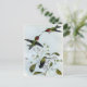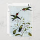 Deux colibris mâles s'affrontent sur une femelle perchée en dessous d'eux sur un arbuste épineux dans cette illustration vintage d'un livre d'oiseaux de 1922.