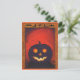 Un "Jack-O-Lantern" brillant est posé sur un lit de paille parmi les toiles d'araignée, un cadre parfait pour la nuit d'Halloween ! Cette carte postale serait une grande invitation à une fête d'Halloween.