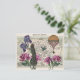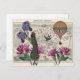 Ce design vintage surplombe une montgolfière vintage, une Française branchée et des fleurs vintages violettes et roses sur la carte vintage d'un touriste.