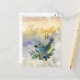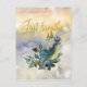 Belle carte postale d'art numérique avec le texte "Respirez simplement" dans une police de caractères en or scintillant, un fond aquarelle éthéré et un oiseau bleu vintage avec couronne et fleurs.