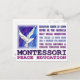 Caractéristiques de conception ce une colombe avec un arrière - plan bleu frais et des citations de Montessori. Elle soutient les enseignements de Dr. Maria Montessori