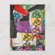A mixed media collage by the artist Angelandspot and photographed by Angelandspot with vintage children's book pages showing bicycles that I randomly used in a bright colored collage