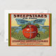 Illustration d'un étiquette vintage de caisses de fruits de Cedaredge, Colorado. Ruban bleu autour du mot Sweepstakes avec montagnes et vergers dans l'arrière - plan.